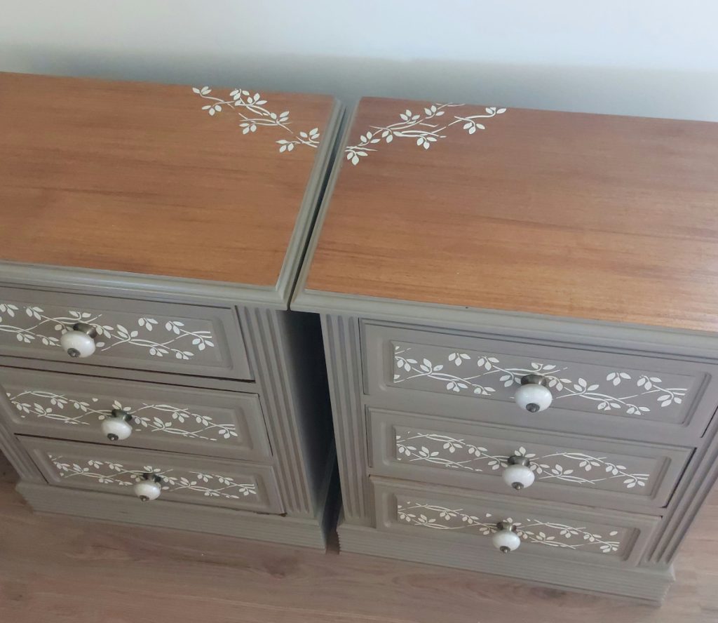 Estas mesitas de noche únicas han sido restauradas y decoradas artesanalmente para aportar calidez y personalidad a tu dormitorio.