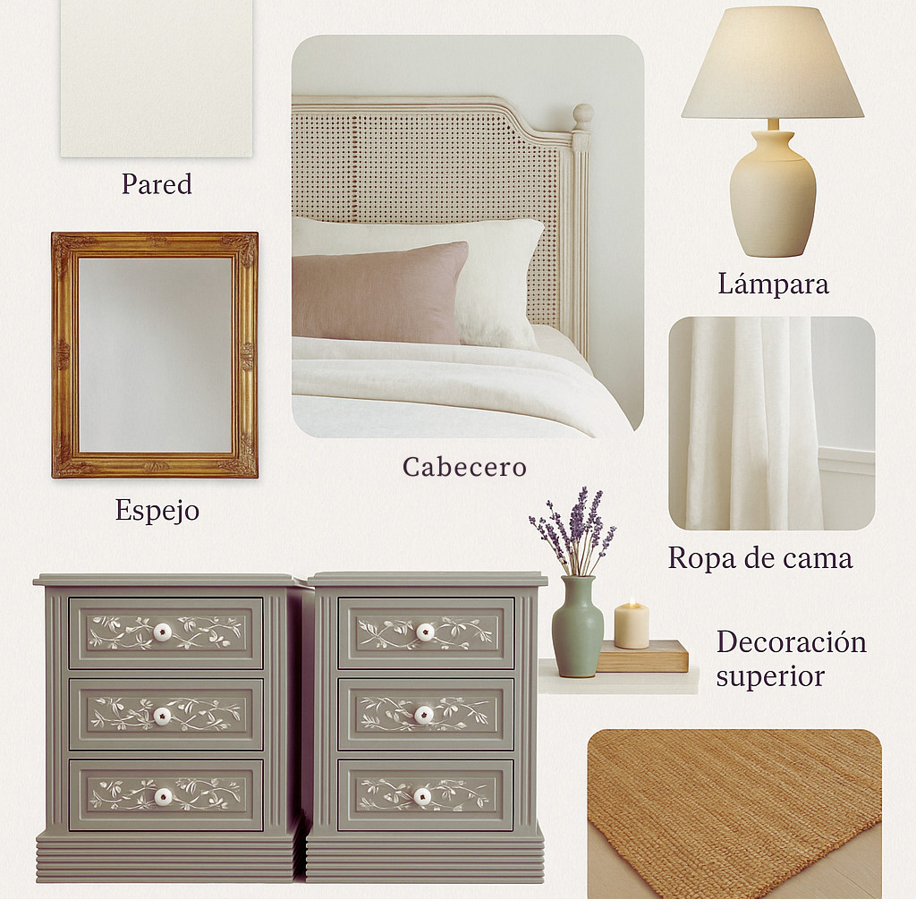 Te muestro posibles combinaciones para que la integres en tu dormitorio preferido.